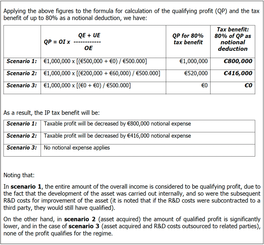 Cyprus IP box regime tax benefit: In essence, both the transitional and the new Cyprus IP box regime offer a tax benefit of up to 80% on qualifying IP profit, by way of notional expense deduction.