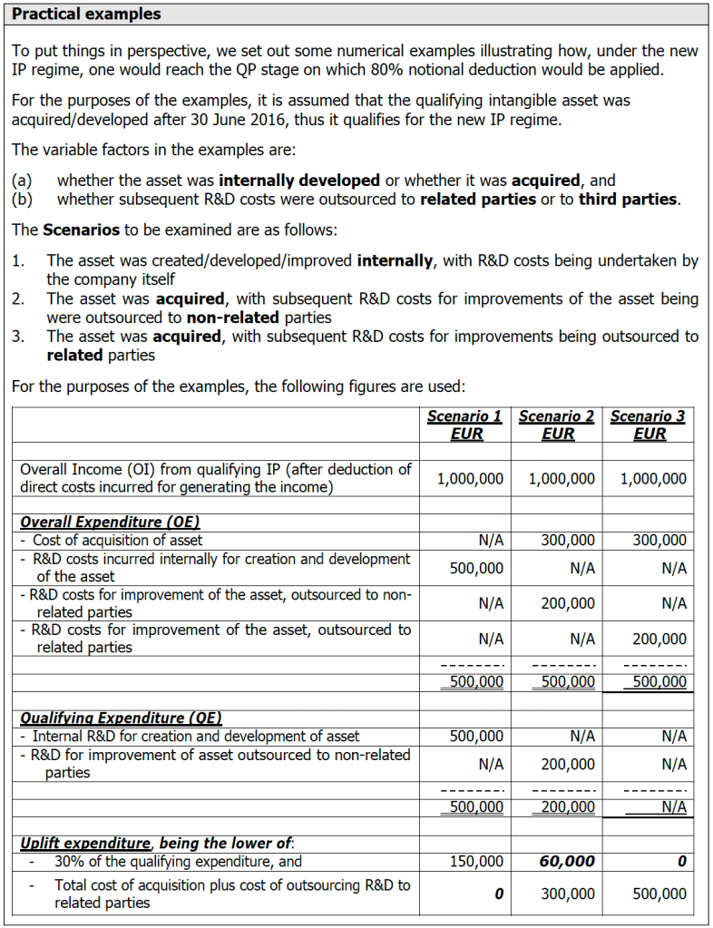 - the total cost of acquisition of the qualifying intangible assets, plus the cost of outsourcing to related parties of any R&D activities in relation to such assets.